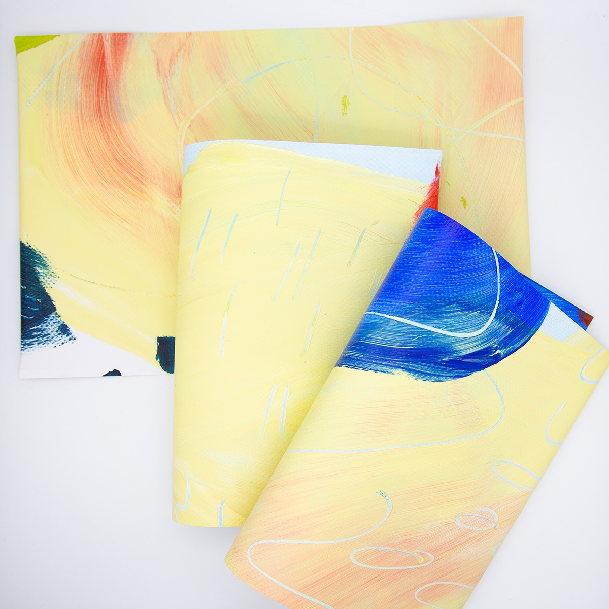 印刷ではなく、手描きの柄のマルチカバーです。B6サイズのノートや本を入れることが出来ます。絵の具の凹凸感、筆の質感、色彩の重なりを楽しんでお使いください。