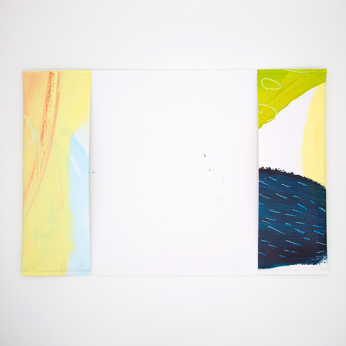 - 耐水性の絵の具を使用していますが、素材の特性上、水分や汗・摩擦などにより色落ち・色移りしたり、圧力により絵の具面同士がくっつくことがあります。ご使用の際は十分ご注意ください。